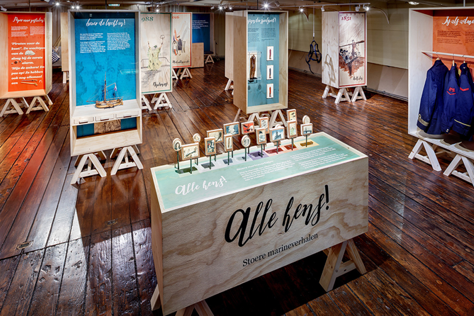 Alle Hens!’ is een familietentoonstelling bij het boek en speciaal gericht op kinderen, met interactieve belevingen en educatieve elementen zoals een speurtocht en verhalen over bekende personen als Michiel de Ruyter, maar ook over onbekende marinemensen.