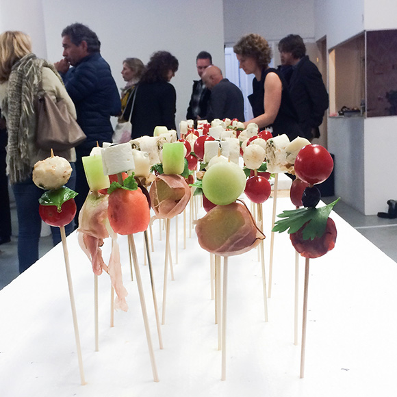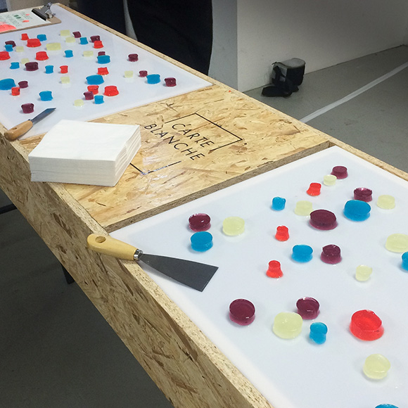 Het verzoek aan Carte Blanche: kunnen jullie iets smakelijks en creatiefs bedenken voor de opening van het festival? Dat was een uitdaging naar ons hart. We wilden ons richten op de aftrap: feest & confetti leek ons daarbij heel gepast. Dus ook in het eten en drinken. We bedachten heerlijke ronde hapjes, die als een parade klaarstonden. Ook maakten we een installatie met een lichtbak waarop heerlijke jelly-shots lagen (cocktails gebonden door gelatine).