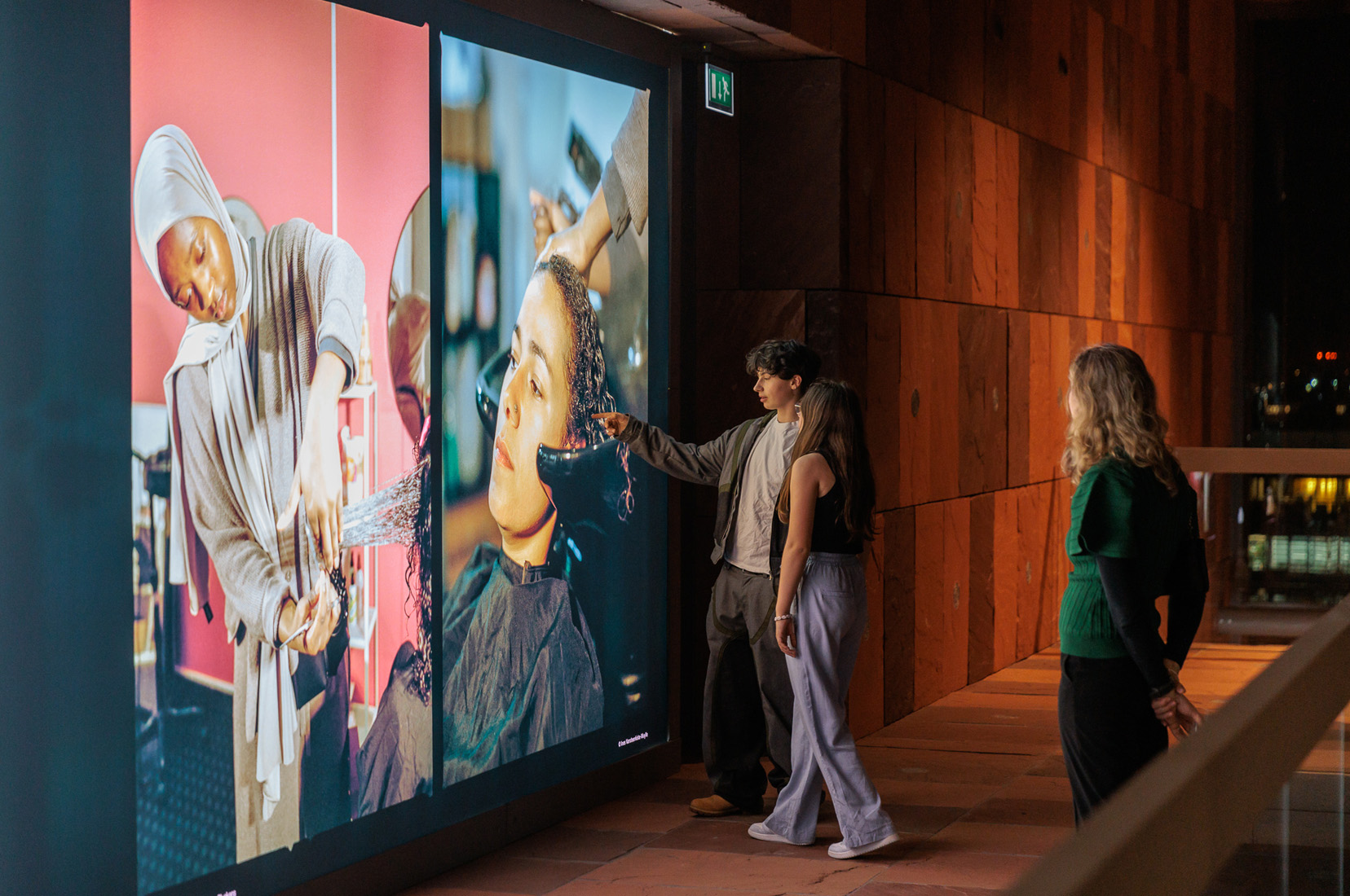 Het leverde een prachtige intieme fotoreportage op, die we in samenwerking met Ines mochten vormgeven voor de wandelboulevard van het MAS. Op weg naar het dak reis je langs de vele haarstijlen, gezichten en technieken.