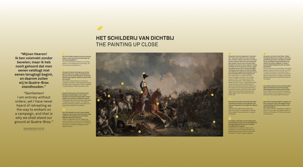 In 2022 vond midden in het museum een bijzonder project plaats: de restauratie van het schilderij over de slag bij Quatre-Bras, gemaakt door Jan Willem Pieneman in 1818. Een gigantisch doek van 6 bij 4 meter. Het schilderij is afkomstig uit Paleis Soestdijk en werd onder het oog van bezoekers volledig gerestaureerd.
