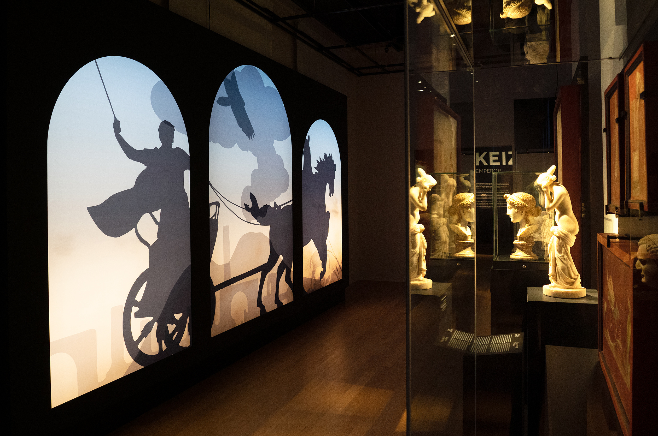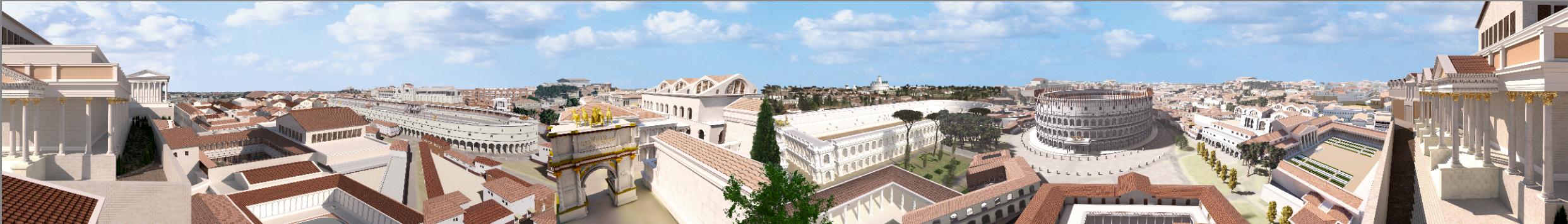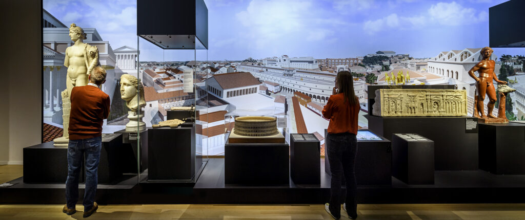 Het hoogtepunt van deze opdracht: de 21×3 meter(!) lichtbak tegen de achterwand. Het werd een in elkaar gepuzzelde collage van 3D-reconstructies (van Learning Sites uit de VS) om zo de rijkdom en impact van de bouwlusten van Keizer Domitianus te laten zien. Veel van de gebouwen die hij liet bouwen, zijn nog steeds kenmerkend voor het hedendaagse Rome.