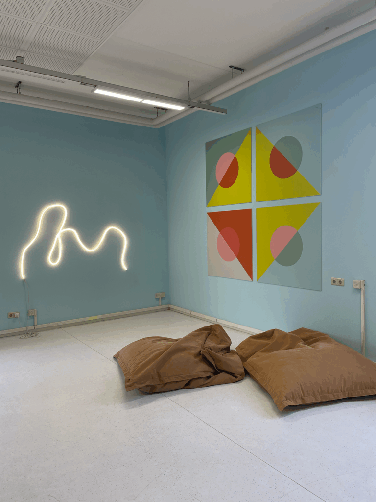 Uitgaande van zoveel mogelijk hergebruik en het opstellen van een een uitgebreider kleur – en vormenpallet is een visuele en ruimtelijke restyling gedaan, waarvan we tijdens de opbouw al konden ervaren dat studenten zich er happy voelen.