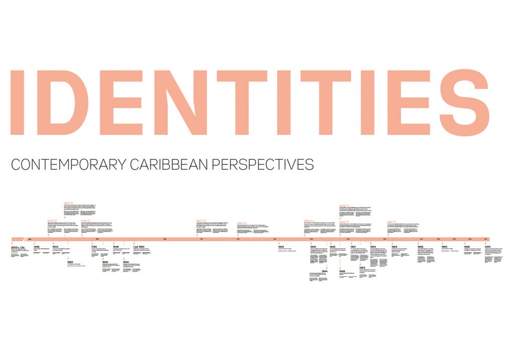 Uit de introtekst: ‘De Nederlands Caribische identiteit is niet te vangen binnen één locatie, taal of cultuur. Deze diversiteit is diep verweven met de koloniale en recente geschiedenissen van de eilanden. Kunstenaars Quinsy Gario, Rachel Morón, Kevin Osepa en Sara Blokland bieden een kritisch hedendaags perspectief op deze geschiedenissen en identiteit.’