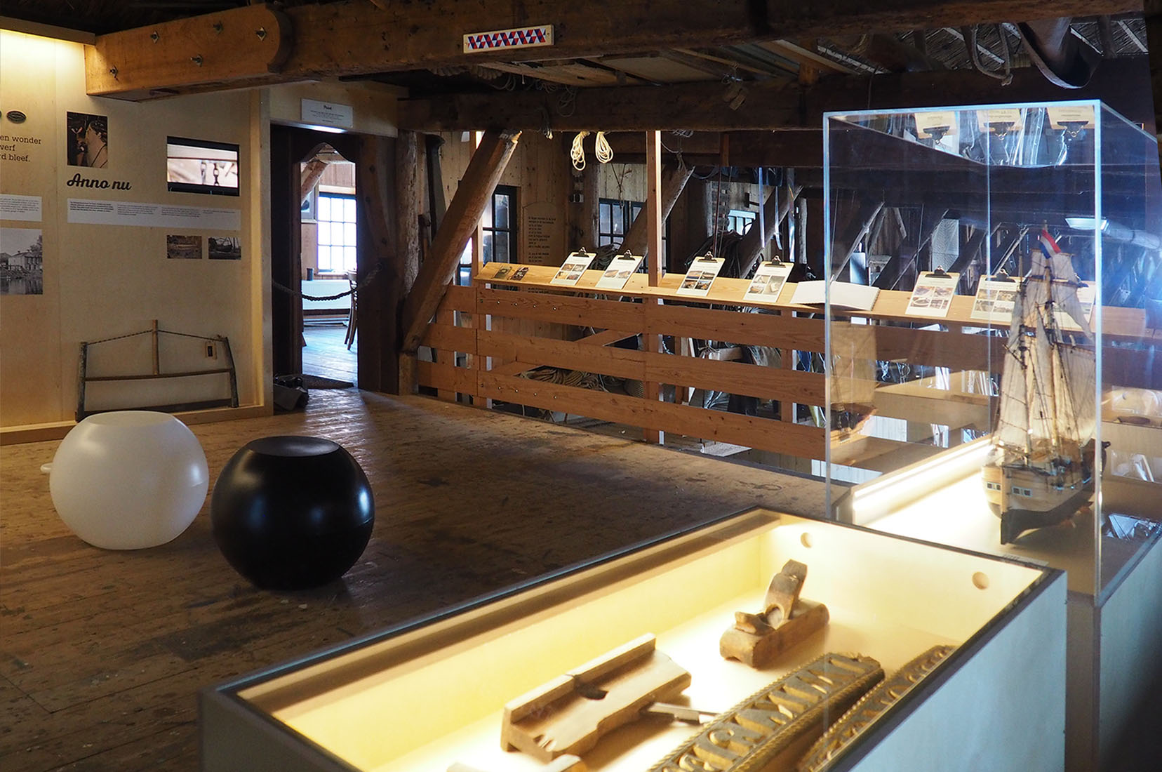 Op het entresol vind je naast de historie van de werf ook modellen en ambachtelijke gereedschappen. Ook is er uitzicht op de werkplaats en informatie over de restauratieprojecten. Kom de (werk)sfeer opsnuiven en steek ook nog wat op!